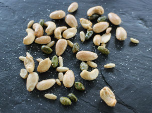 Feinste geröstete Nüsse mit Curry, Meersalz oder Chili. Das ganze Sortiment ist im Online-Shop erhältlich.